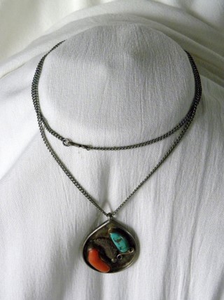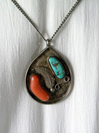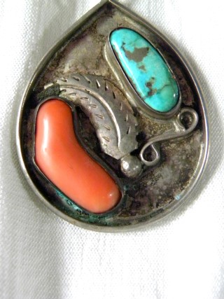 Vintage Old Pawn Stick Coral & Sleeping Beauty Turquoise & Sterling Pendant