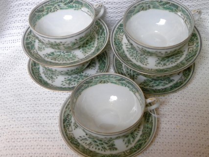 Vintage Set of 5 Hand Painted Egg Shell Porcelain Gold Gilt Tea Cups & Saucers 02.269.QO to 271