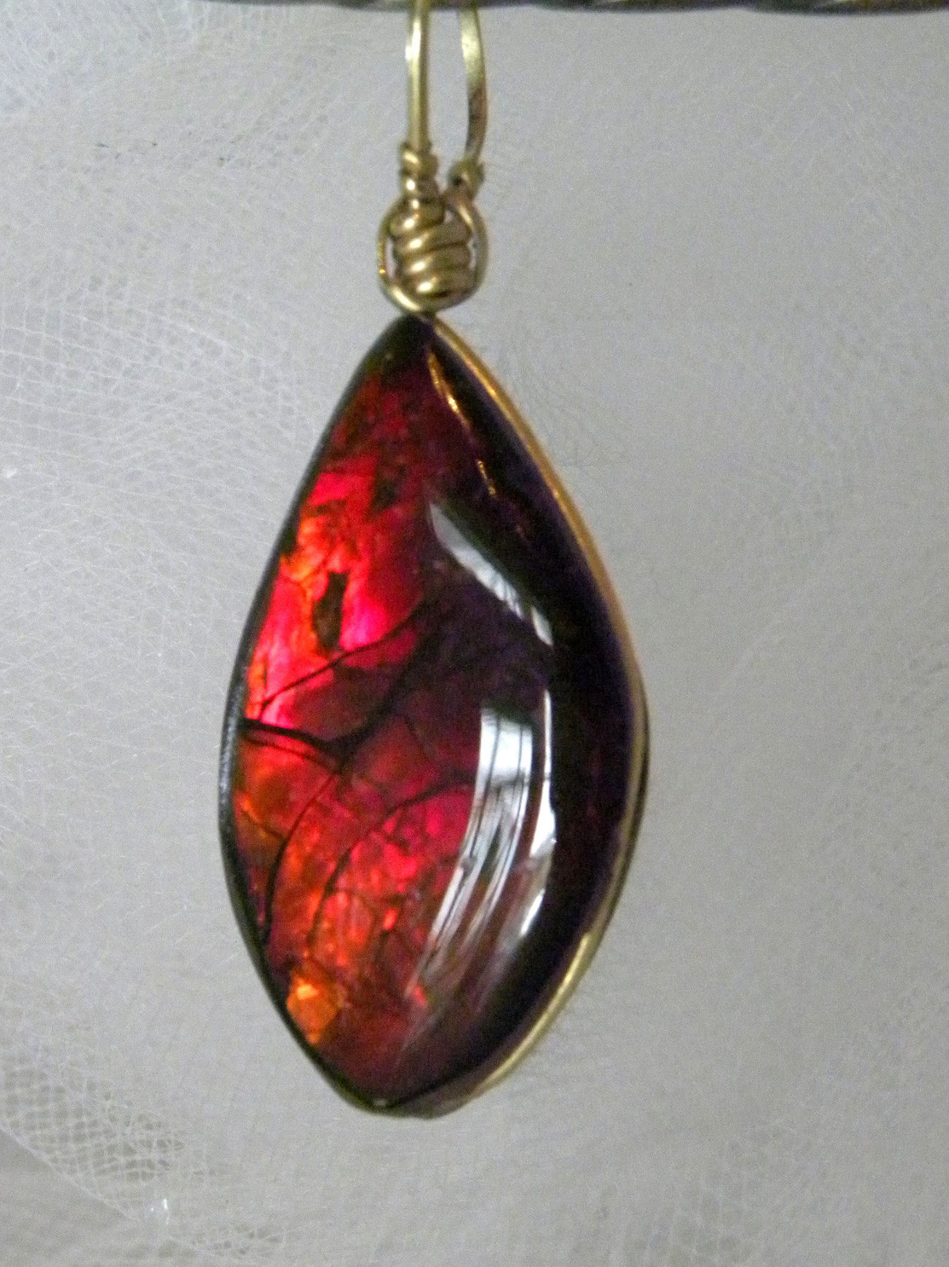 Gold Color Wire Wrapped Alberta Burgundy Rose Ammolite Pendant