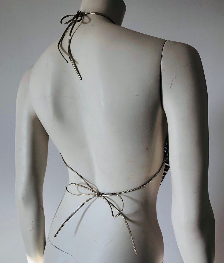 Whiting & Davis Vintage 1970's Gold Metal Mesh Draped Backless Halter Top