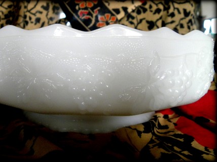 Anchor Hocking Fire King Grapes on the Vine Milk Glass Fruit Bowl C89