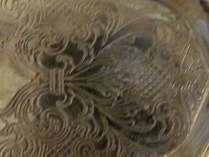 Scratches on bottom - Good condition for age, silverplate in good order. Sole chased with scrolling stylized etched design and lovely faded antique tarnish, markings read " Oxford”. Ideally sized for holding keys, cell phone, wallet, etc. approx 13" x 7"