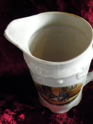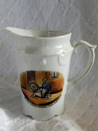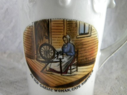 Old Porcelain Pitcher "An Old Gaelic Woman, Cape North C.B." - at a Spinning Wheel S159-I