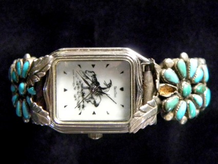 Old Pawn Turquoise & Sterling "SelecTime" Watch Band Signed - Very Old - "End of the Trail" Motif US4J.153 BB