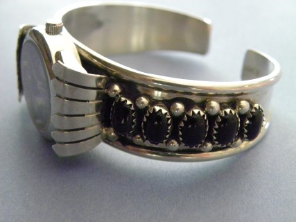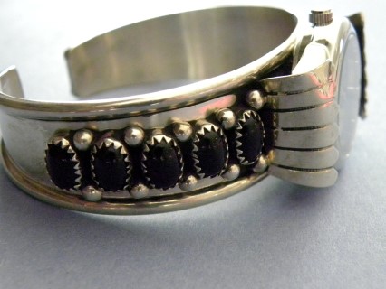 Vintage Navajo Onyx & Sterling Silver Watch Cuff