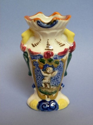 Vintage Cherubware Majolica Style Hand Painted Ceramic Vase Made in Japan