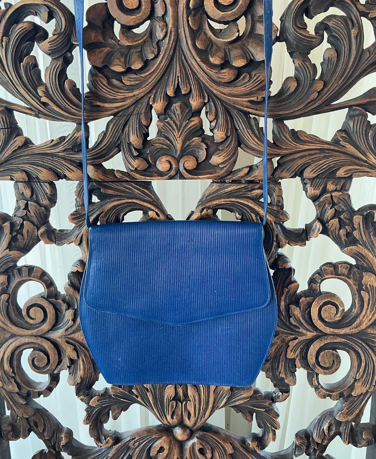 Blue Textured Leather Handbag