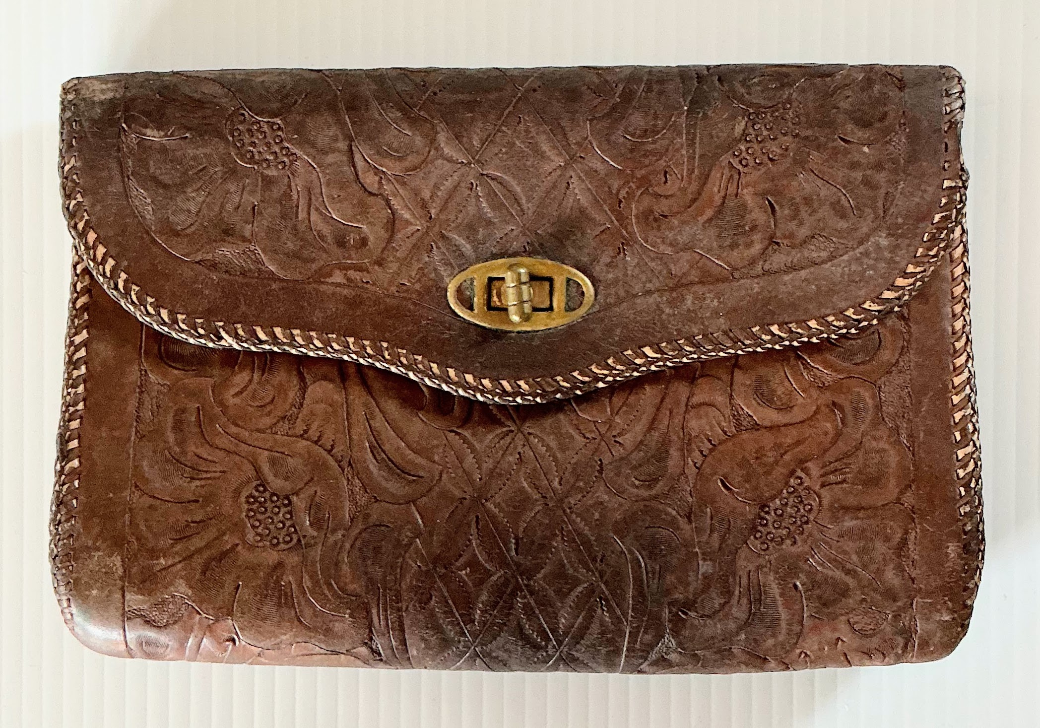 Brown Handmade Floral Design Clutch